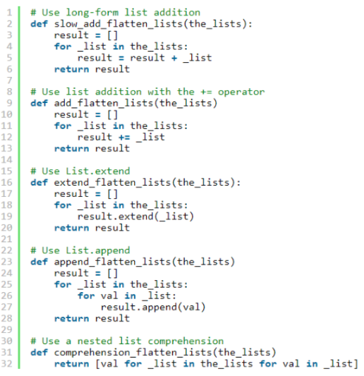 Explore six different was to flatten a list of lists in Python and how their performance compares. The fastest of the six methods mentioned might surprise you!